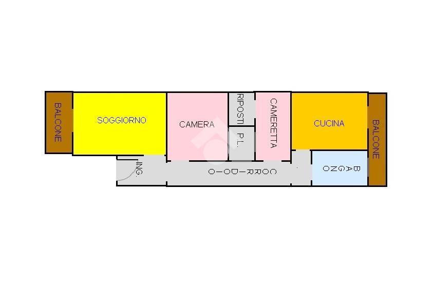 L'immobile, costruito negli anni '70, offre una disposizione funzionale degli spazi, con ingresso su un disimpegno da cui si accede ad un ampio salone, una camera da letto, cameretta, luminosa cucina soggiorno, servizio e ripostiglio.